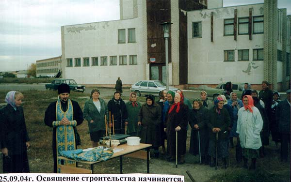 Первой набралась смелости заявить об этом реальному её воплотителю – директору совхоза «Наровчатский» Александру Домбаеву – мать-героиня, ныне покойная, Лидия Николаевна Алексеева. К нашему приятному удивлению, Александр Николаевич легко отреагировал на просьбу жителей и в сентябре 2004 г. началось строительство часовни во славу Покрова Пресвятой Богородицы, в подражание пензенским наровчатцам, с которыми, кстати, в годы руководства нашим сельским поселением Т. Буданцевой к тому времени был заключен договор о сотрудничестве. Стараниями А.Н. Домбаева большой вклад в возведение Божиего дома внесли известково-доломитовое производство, горнообогатительный комбинат, частные предприниматели. Строительство часовни продолжалось два года, а к моменту её открытия настоятель наровчатского Покровского собора иерей Валерий Волков привез список Трубчевской иконы Божией Матери, специально изготовленный по его заказу пензенским монахом с дарственной надписью от жителей Наровчата на оборотной стороне иконы. Целый год шла работа над образом. На его написание ушло более полугода. Затем икона была освящена у первописанного одноименного образа и длительное время находилась возле него, а перед отправкой к нам с нашей теперь иконой совершили крестный ход в Наровчате.