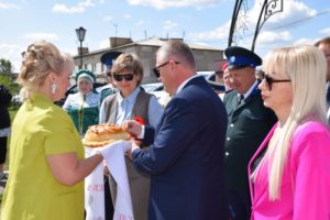 Празднество началось со встречи почётных гостей хлебом-солью. Поздравить виновников торжества приехали глава района Артём Яхимович, председатель Собрания депутатов Сергей Ульянцев, а также глава Чёрноотрожского сельсовета Оренбургской области Оксана Понамаренко и её земляки – казаки села Чёрный Отрог.
