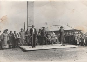 Затем гости по памятной улице Михалёва вышли к стеле Партизанам Гражданской войны. один из гостей житель Агаповки Николай Знаменский, бывший начальник РЭС, рассказал об истории посёлка и его жителях в те годы, когда велось активное развитие электросетей.